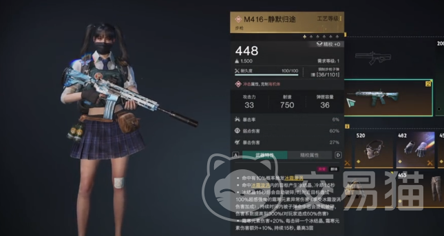 装备方面建议选择黑石 4 件套 + 猎鹰 1 件套 + 雪域迷彩手套。副武器这方面反正不用因此就可以随意的搭配,在词条方面优先等级是触发频率>冰霜旋涡伤害>元素伤害>异常伤害。
