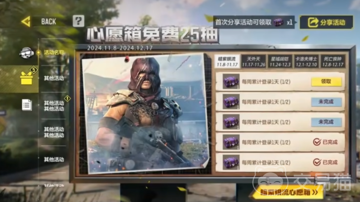 当然,免费25抽心愿宝箱也是一大亮点。从11月8日到12月17日,只需在指定时间累计登录,即可享受这份大礼。宝箱中藏有各种史诗级武器及角色皮肤,让你的装备库瞬间焕然一新。