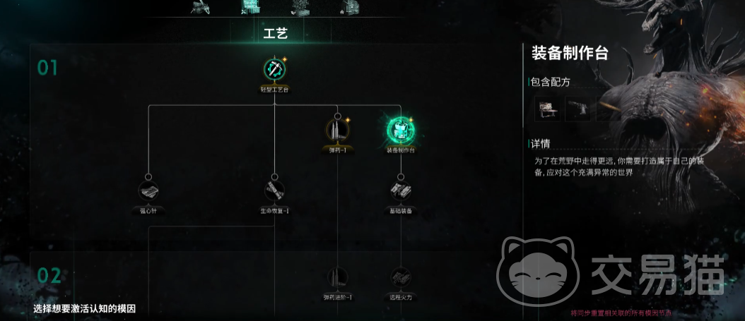 在获得完整的蓝图之后,就可以点击背包,然后使用蓝图来合成武器,合成完成后就可以开始制作了,在模因中将装备制作台解锁之后,界面的右边选择能制作的霰弹枪的品阶,需要注意,品阶越高使用的材料等级就会越高,制作出来的武器属性也就越强,制作台的等级也很重要,毕竟高级制作台才能制作高阶装备。