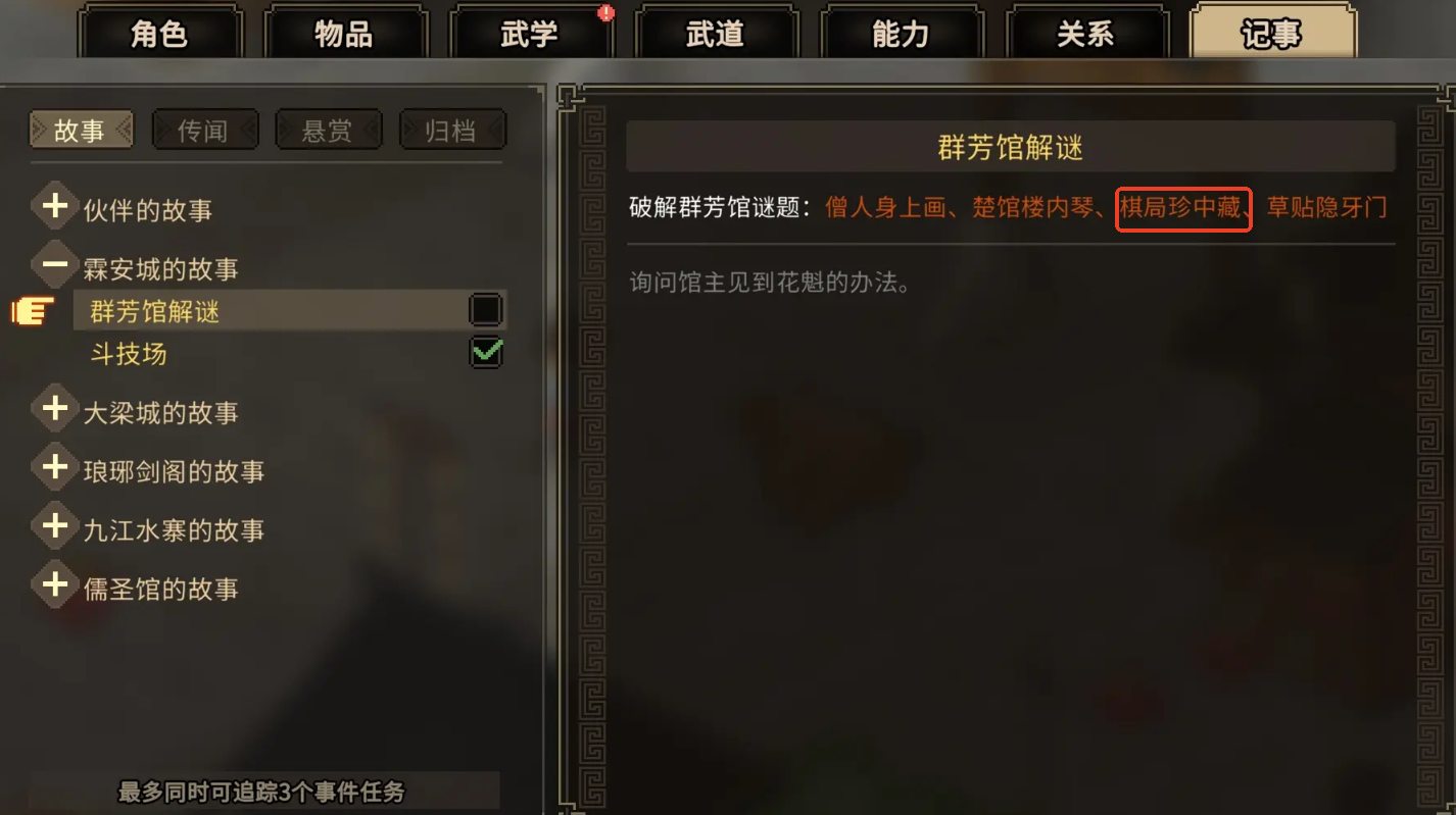 大侠立志传棋局珍中藏怎么获得 大侠立志传群芳馆谜题攻略