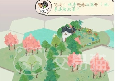 在此谜题中,玩家需将桃树和李树按顺序排列在空地上,形成自然的桃李相邻的景象。这不仅符合“桃李逢春”的意境,也顺利通过了关卡。此任务的核心是准确地理解诗句的意象,将桃树和李树依序排开,从而重现春天桃李盛开的繁荣景象。