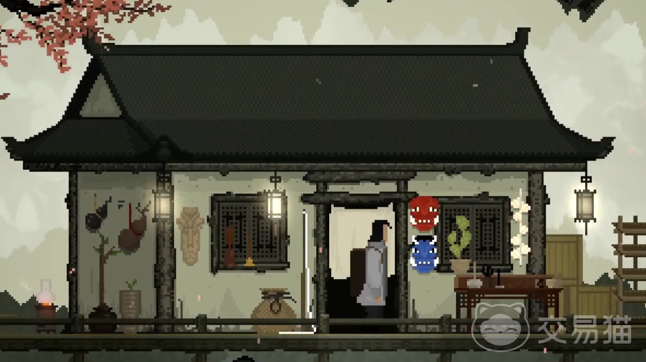进入场景先调查药铺里的箱子,得到八十五文后走到酒馆,在屋子的地上能捡到一顶草帽,将其给蛤蟆精,能得到破碗,出屋子向右边走能捡到山茶花,把破碗给穷鬼能换取铁镐,用铁镐砸开冰后能前往茶铺左边的屋子,同时这里也是岳老六的家,进入后调查算盘和账簿,用算盘算出一共欠多少钱这里的答案是八十五文,解开后玩家能得到鱼形钥匙,用鱼形钥匙打开柴房,调查里面柜子得到回忆碎片,前往山洞像下图一样解开其中的谜题;