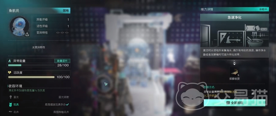 鱼航员的作用也是非常不错,不仅能够为大家去自动采集海水以及渔获,更是能增加反渗透净化设施和发酵桶的生产效率,该特性使得它在资源收集以及生产方面具有很大的优势。