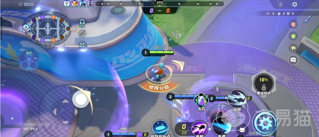 4、分路:地图上有不同的分路可以选择去走,玩家们需要根据宝可梦的类型与特点选择合适的分路作战,比如攻击型宝可梦更适合走中路,方便对上下路进行支援;防御型宝可梦适合走下路;速度型的可以走上路。