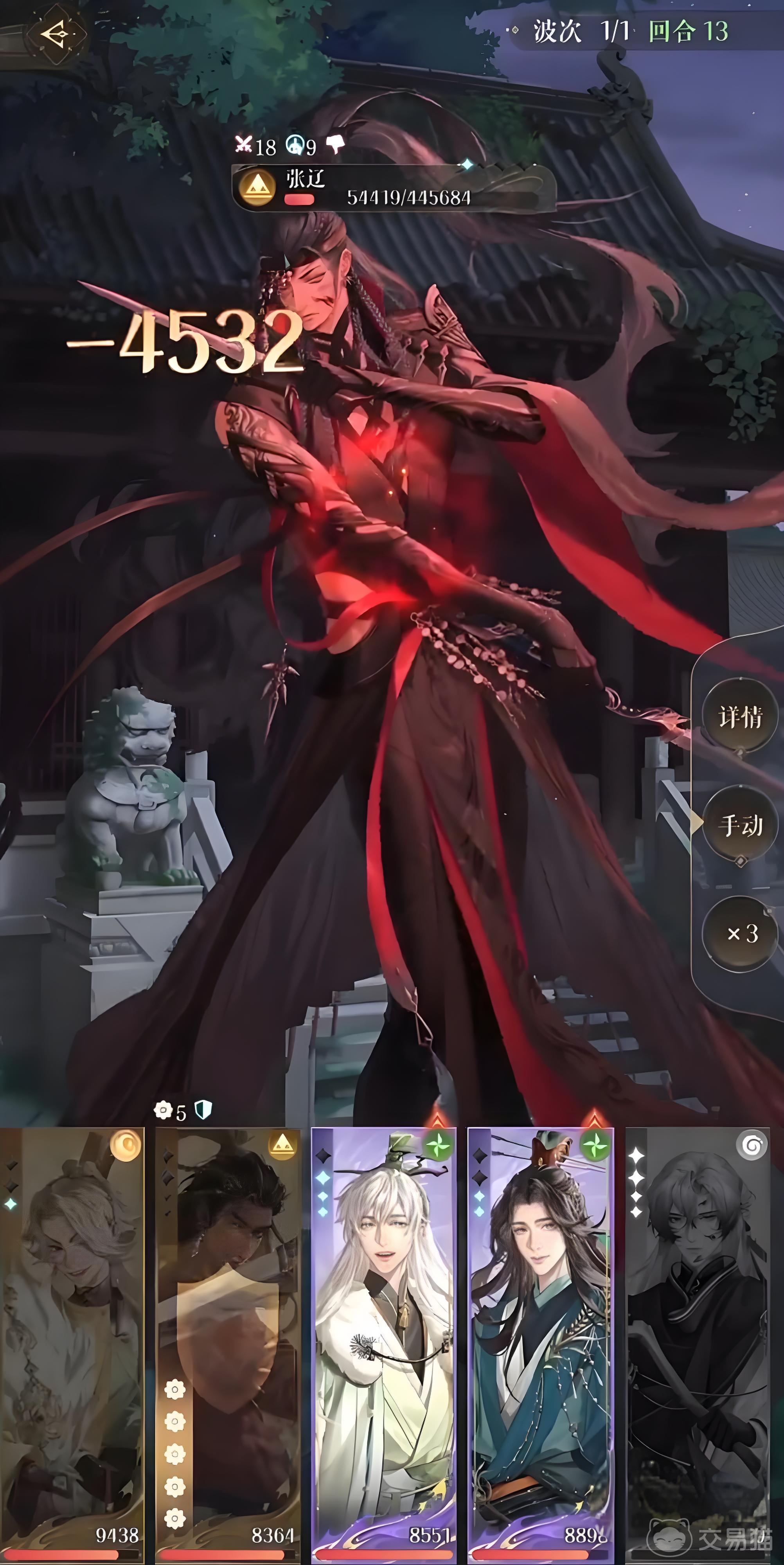 小编推荐的阵容搭配是孙权+孙尚香+史子眇+剑孙权+吕蒙+陈登。孙权的血量要养到23000左右才可以承受张辽的第一波攻击。孙尚香的定位是主输出+队长,需要打出暴击伤害。史子眇和陈登的定位都是回血和辅助。首先开局的时候,陈登先防御,其他人普攻,然后再换到史子眇防御,这样换着循环到孙权防御。然后boss第二波大招的时候,卖掉孙权,其他人下拉防御。第三波大招的时候,先卖掉吕蒙,再是陈登和史子眇。这个方法可以保证通关,至于三星可以后期等级更高之后回来补星。