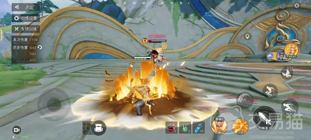 先来看主动技能效果,释放后,他利用盘古斧对前方劈出多道裂隙,敌人遭受物理伤害,并会伴随缴械效果,被缴械的敌人此时是无法使用普攻和蓄力攻击的。他还拥有一个被动技能,可以通过普攻的形式来积攒能量,五次可以将能量积蓄满,蓄力普攻直接算两次积蓄,蓄满了能量之后,可以幻化出能量臂对敌人攻击,该状态下盘古普攻是出于金身状态,此时的他是无法被控制,也无法被破招的,可以放心大胆的攻击。