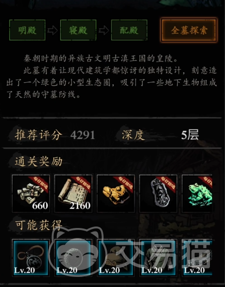 这个关卡总共有着明殿,寝殿,配殿三个区域,也是整个游戏的第一个关卡。关卡总共只有5层,可以获取到一些不错的道具奖励,装备的话基本上是以10级左右的装备为主。在一开始的时候我们直接往右边进行前进。在进入之后机关会降下来,之后玩家们可以从旁边拿到一把新的武器。在拿到武器之后玩家们从旁边的松软地段进入,之后往下可以看到有一个宝箱,在开了宝箱之后我们可以继续往下走,在走到头的时候会看到一个蝙蝠,我们可以隔着墙壁将其击毙。