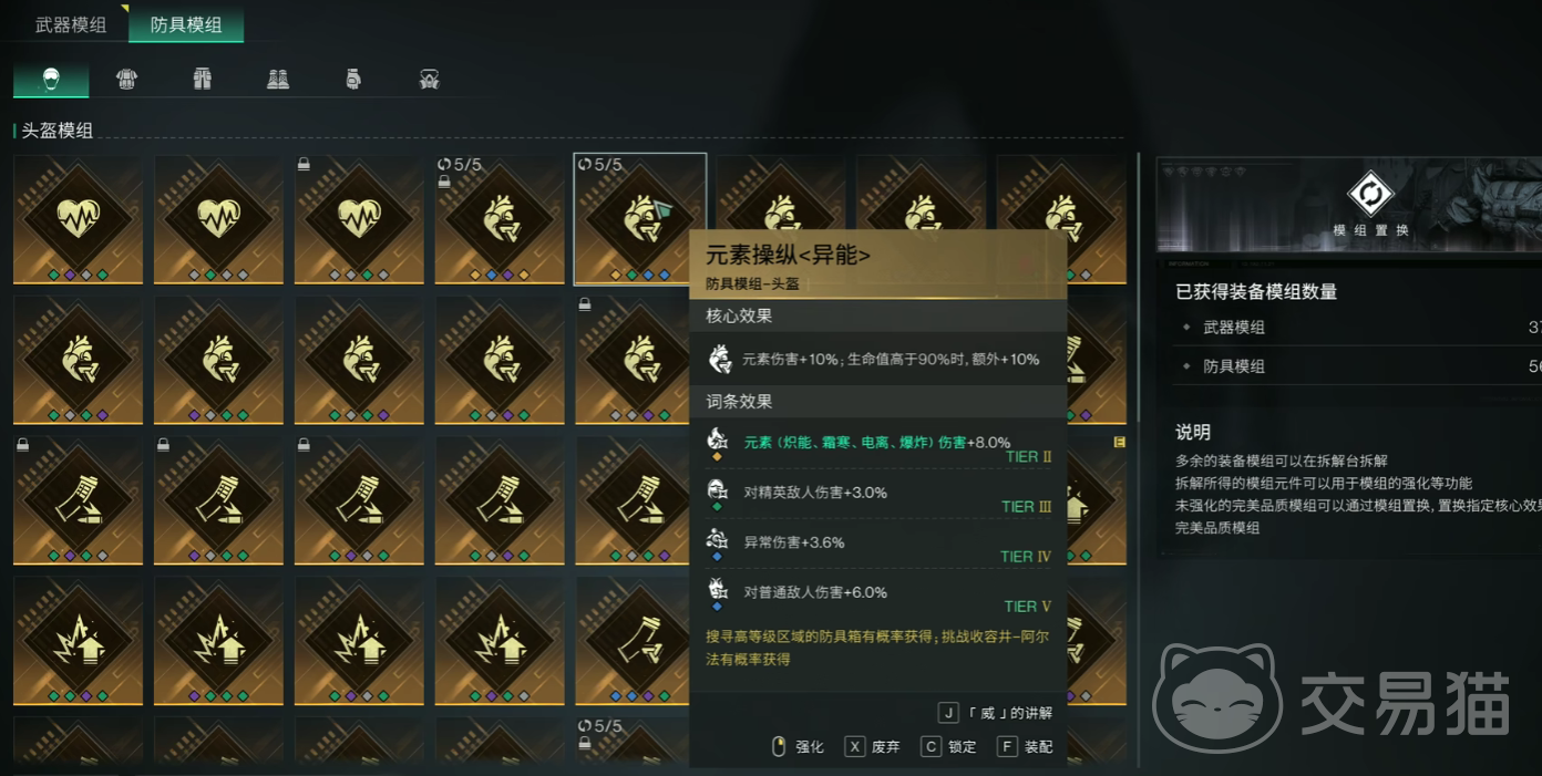 在防具模组的选用上面,建议使用异常属性的防具,其中最值得推荐的是异常专家,它能够增加雷电的buff的攻击效率,将异常属性伤害数值提高到基础攻击倍率的15%,不仅如此,它还能够增加基础的攻击倍率,该攻击倍率数值为10%,如若玩家有其他的异常属性防具模组也可以替换使用,在基础防具配件上,建议使用庇护者系列,搭配重装系列的下身装备,能够累加异常属性伤害,在凑齐了所有的异常属性buff后,玩家的基础雷电伤害会叠加到20%。
