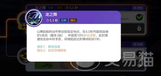 在技能配招方面,快龙的一技能龙卷风是基础技能,可以对敌方造成减速和伤害。随着等级的提升,玩家可以选择升级龙卷风为龙之舞或神速。龙之舞能够提升快龙的攻击、移动速度,并在持续时间内减少普攻和技能的冷却时间,非常适合在团战中持续输出。而神速则是一个突进技能,可以快速接近敌人并造成伤害,适合用于追击和切。如果你偏节奏一点那么就可以升级神速,偏后期的话就升级龙之舞。