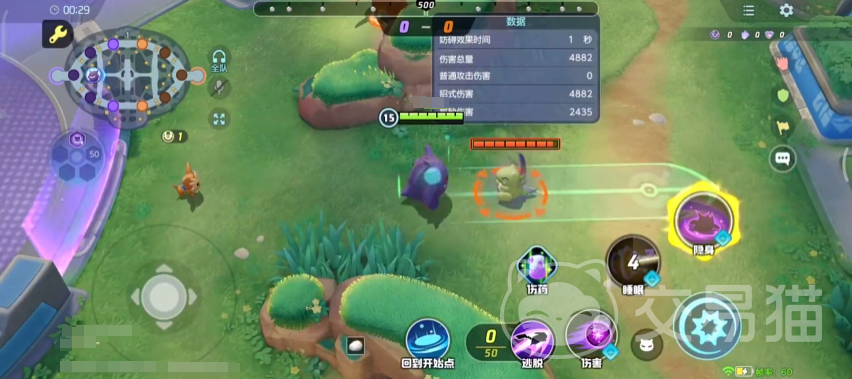最后是它的集结大招“遁影奇袭”,可以向指定地点跳跃,随后自身进入隐形状态,再次释放招式时,将会对自身周围的对手造成510的伤害,虽然隐身时敌方时看不到自己的,但是靠近对手时是会有标记提醒的,而且该状态下的它受到伤害时这个效果也是会解除的。