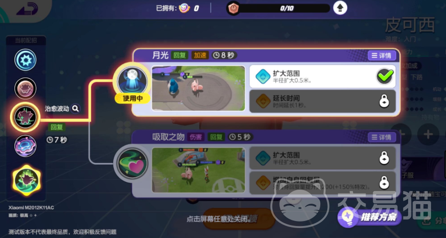 在游戏中,皮可西是一名辅助型宝可梦,擅长群体治疗和提供战场支援。它的被动技能十分给力,“魔法防守”可以在为友方宝可梦进行治疗时,根据治疗量额外获得护盾,这使得皮可西在团战中能够更好地保护自己和队友。在技能选择上,皮可西的“治愈波动”是一个关键技能,它可以选择升级为“月光”,为自己和周围的友方宝可梦持续恢复生命值,并提高移动速度。