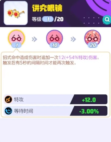 而讲究眼镜则是一个强大的攻击性装备,每次招式命中都能追加一次至少60点的伤害,这对于特攻高的千面避役来说是一个非常不错的增益,穿透汤匙则增加了技能的穿透率,使得千面避役的技能更加致命。