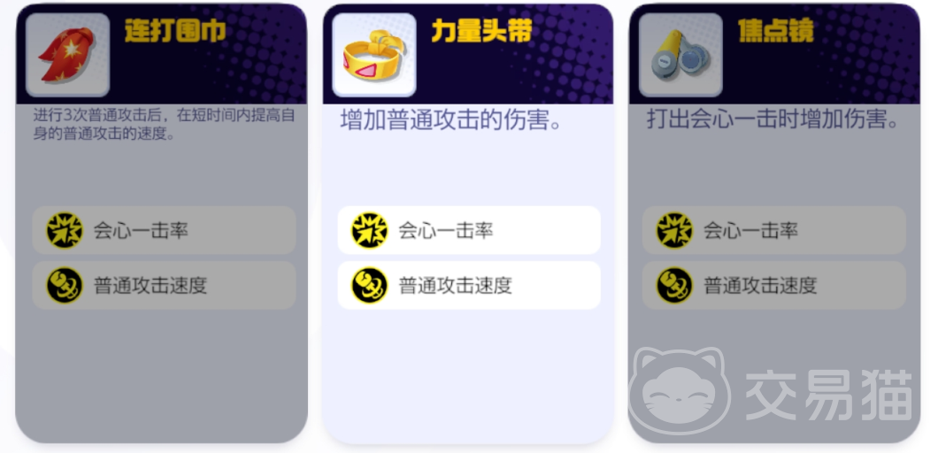 持有物方面因为也是普攻输出为主的宝可梦,射手三件套“连打围巾+力量头带+焦点镜”算是标配了,提升普攻的攻速和伤害,同时更容易打出暴击。道具的话带一个万灵药,用于解控和短时间免控,避免被对方开到集火秒掉。