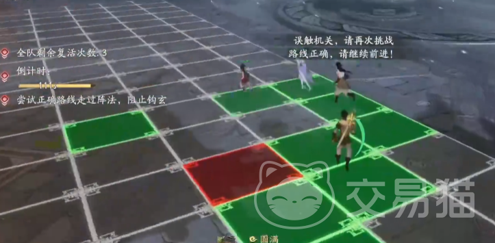 当地面出现许多格子的时候,需要走绿格子到达对面,不要盲目走,建议是一个在前面走其他几个在后面跟着,这样可以更快抵达对面,猜错了会直接回到原点。走完格子后boss会再次处于虚弱状态。当地面出现紫红色格子的时候注意不要踩上去。
