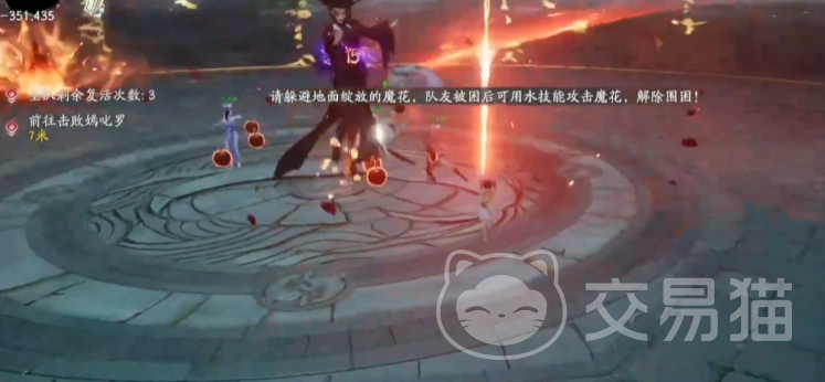 白给的boss,只需要一个水属性的角色就可以克制她,打断她的技能,虽然攻击范围很大,但大多比较好躲。第一个机制四周会出现光圈,每个光圈里站个人就可以。但地面有花的时候,如果不处理就会被眩晕,这时候只要用水属性的技能就可以破除。