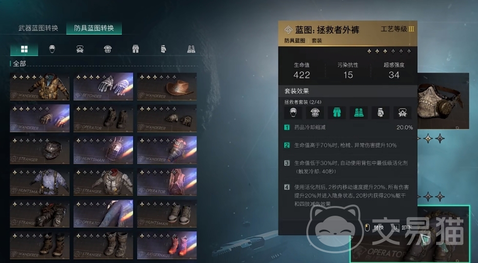 从拯救者套装自带的效果来看,其重心更偏向生存方向。在装备一件拯救者防具时,玩家们就能享受到药品冷却时间缩减20%的效果,在挑战高难地图和副本时很是实用。而在穿戴上两件拯救者防具后,玩家们只要确保自己的血量在70%以上,就能获得枪械伤害和异常伤害均提升10%的加成。