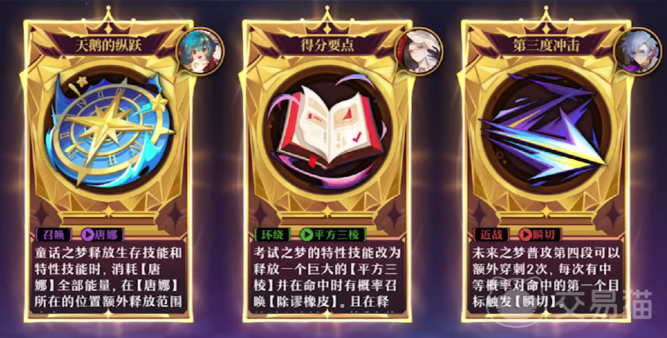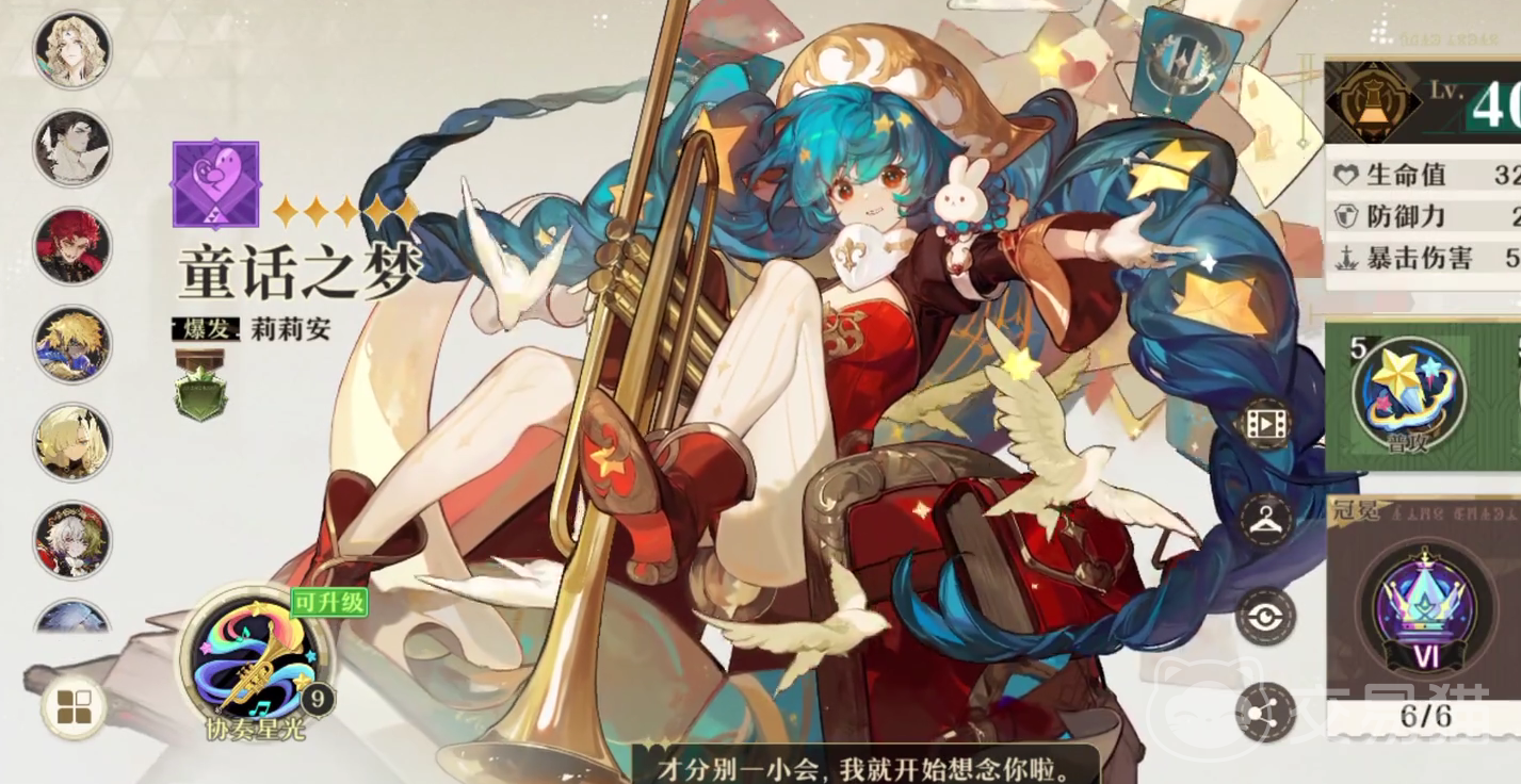 固然在释放对应技能时,童话之梦一定要保证自己处于安全的位置,否则很有可能被怪物攻击,第三个技能是童话之梦的被动技能,当童话之梦和白兔其实唐娜结合时,可以形成特殊羁绊,如若两者同时在场,输出能力可以得到大幅度的提升,虽然童话之梦拥有很强的攻击能力,但是他的生存能力比较低,不然在实际的战斗当中,一定要在携带一个治疗型的角色进入到关卡内。