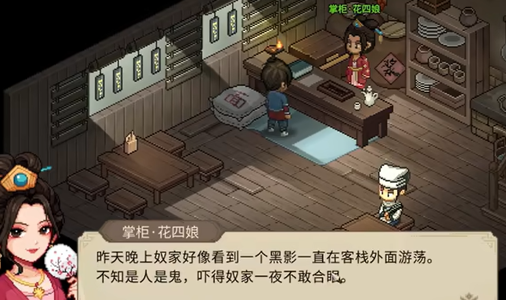 接下来的步骤是相助花四娘将玄衣会的刺客解决了。在子时至丑时之间走进客栈,你会触发一场战斗,与泼皮和刺客较量。这场战斗至关重要,因为它决定了你是否有资格邀请花四娘加入你的队伍。如果胜利了,你将获得她的信任,并拿到一些实用的奖励,比如丙级外功花拳绣腿和花四娘的钥匙。