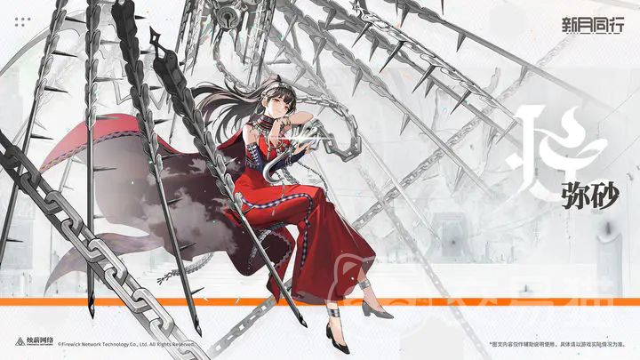 弥砂是美艳的御姐形象,在作战属性方面与洞明不同,她是偏向于控制,生存类型的角色,控制能力比较出众。”针牢”的普攻,可以对选中的目标进行143%攻击力的物理伤害。”钢喙”在使用之后,不仅对敌方造成153%的物理损伤,同时有50%的几率对敌人添加压制效果。