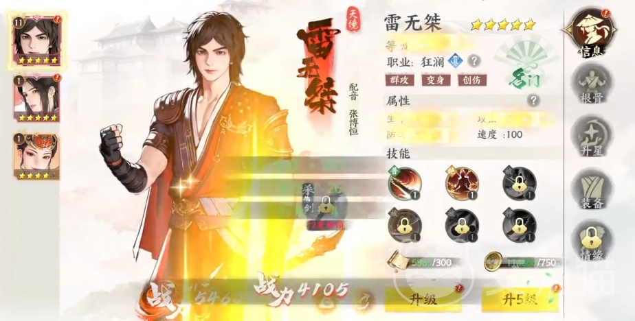 首先推荐这位角色,他不仅在游戏前期展现出强大的群体伤害能力,还能作为副坦克吸收部分伤害,保护队友免受攻击,他的技能能够对前中排的敌人造成重创,并附加创伤效果,持续削弱敌人战斗力,当雷无桀升级解锁特定被动技能后,一旦血量降至一半以下,他将进入火灼状态,不仅大幅度提升自身的输出,还能瞬间恢复所有生命值,这使得他在持久战中拥有惊人的续航能力,常常能成为团战中的MVP。