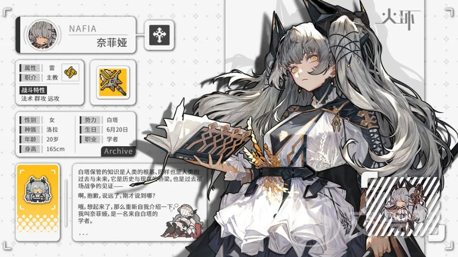 以上就是火环手游奈菲娅怎么样的相关介绍,在游戏中的奈菲娅在人设上面就是这样一个角色,相信很多玩家都会喜欢这样类型的学者角色,那么后期大家使用的时候也是组成雷系配队效果会更好。