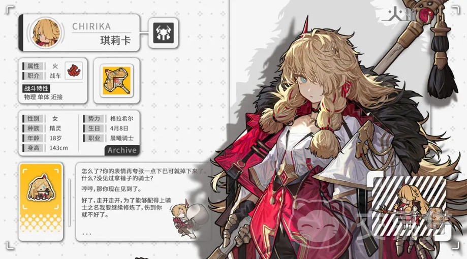 火环手游琪莉卡怎么样就为大家介绍到这里啦,如果大家喜欢近战角色的话,这样一个兼具力量与勇气的战车角色,无疑是任何火系队伍中的适配角色,大家也可以选择使用琪莉卡来组成物理输出的队伍哦。