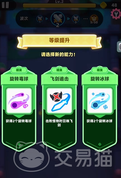 在游戏中玩家需要通过在关卡中击杀敌人,获取经验和金币,在战斗中每次升级都能够获得三选一技能的机会,对于每一个技能都有了品质的加持,技能的品质从绿、蓝、紫、橙逐步的提升,品质越高的技能效果也就越强大,在战斗之中玩家还有六个装备栏,装备类型也是按照颜色进行区分的,在游戏中获取三个相同的装备就能够合成一件高级装备,能够增加装备的基础属性,还可以解锁额外的属性加成。