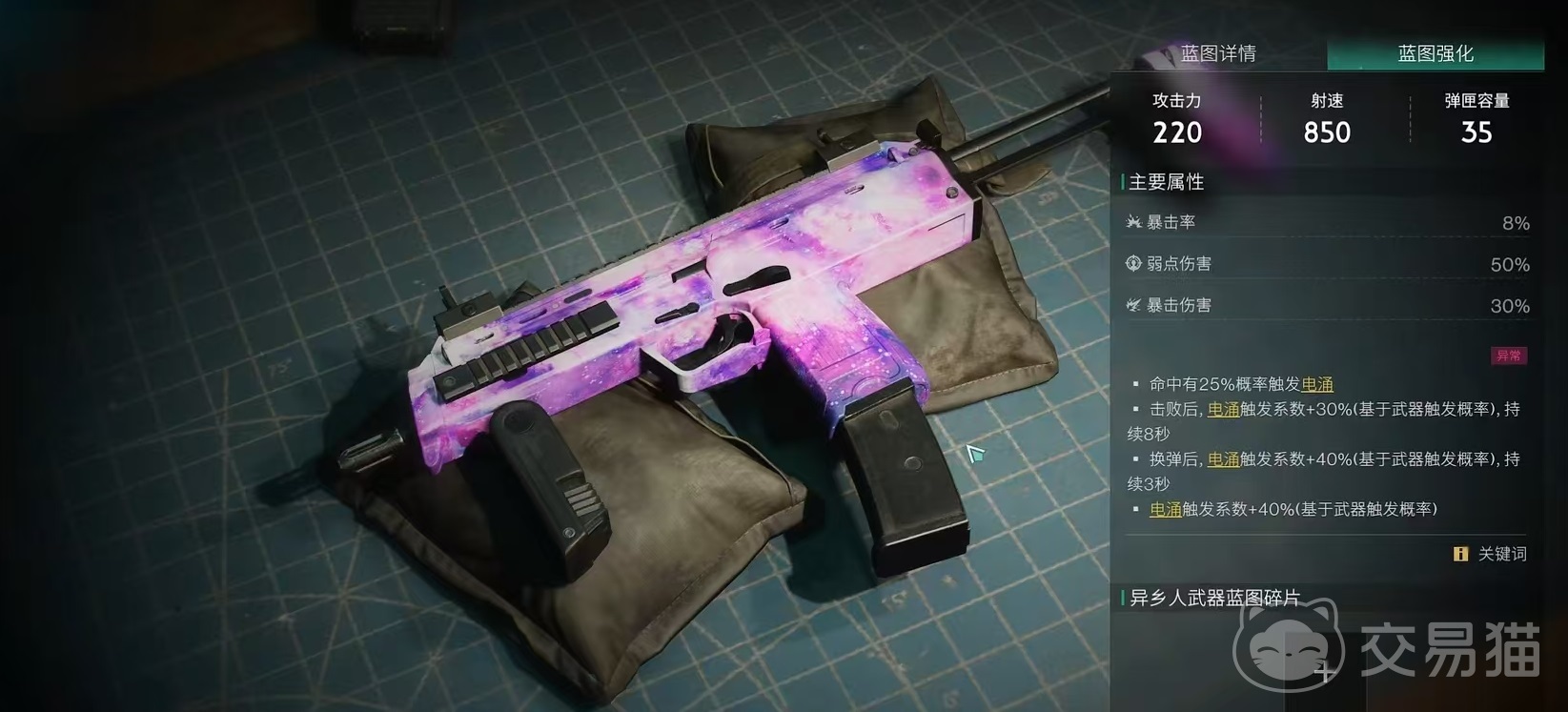 很多玩家认为外层空间是游戏中非常有潜力的一把枪,事实也确实如此,它是完全可以达到t0排行的一个武器。首先来看一下它的基础属性,该武器在主属性方面包括8%的暴击率加成,50%的弱点伤害和30%的暴击伤害。另外在命中时候有25%几率触发电涌。击败目标时,电泳触发系数增加,持续8秒钟,换弹之后电涌的触发几率同样能够提升,持续三秒钟。