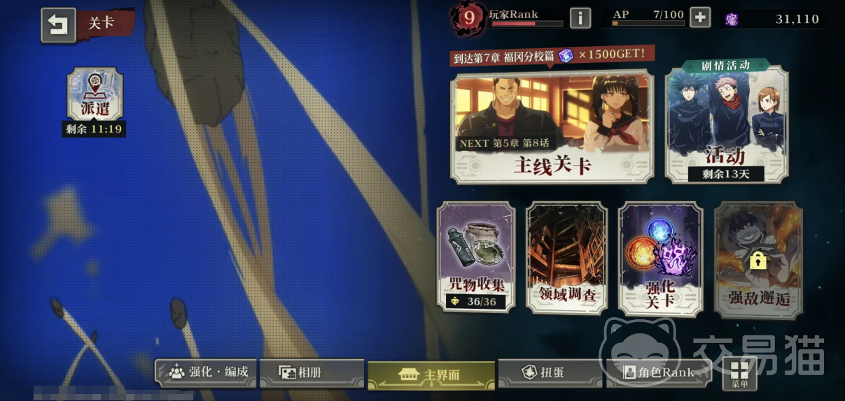 3、阵容搭配:一般情况下的搭配思路都是3辅助+1输出的阵容,输出的话需要将每个阵营的角色都练一个才行,不过在打高难度副本的时候也是可以租借其他好友的输出角色。比如大家在挑战B0SS阵容的时候,那么他最为重要的词条就是即死效果,此时队伍里携带一个虎杖就可以解决很多问题,因为他可以免疫即死效。选定主要输出位虎杖的话,就可以围绕他来搭配辅助了,那么花御+結木海斗+虎杖钉崎野蔷薇就够了。