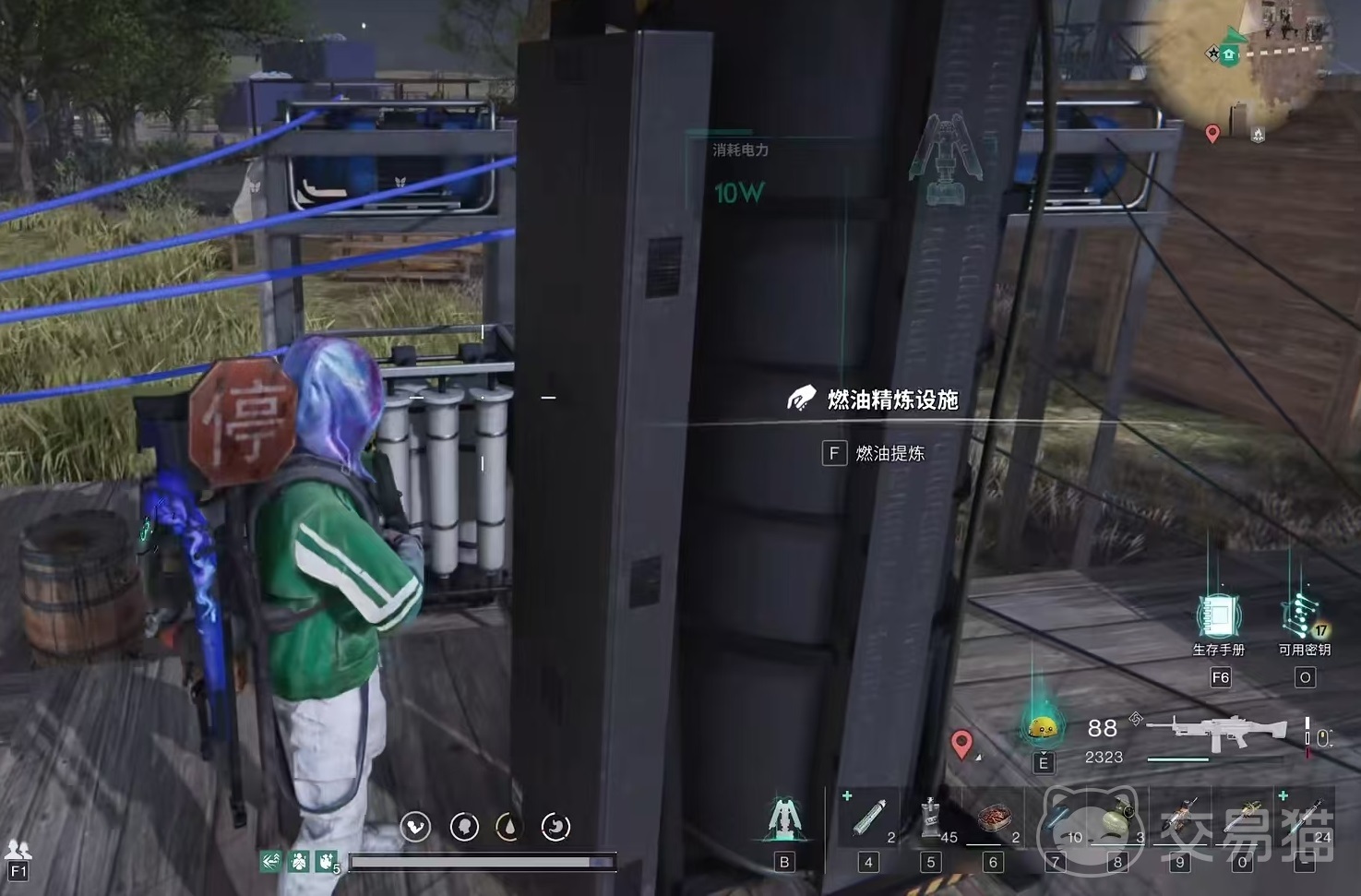 接下来需要摆放上控电总开关,然后外接出两个开关,分别运行。第1个开关来控制抽水泵,设备之间用电线相连,抽水泵就负责从地下将需要的原料源源不断的抽取出来。另外一个开关连接的是燃油精炼设施,燃油精炼设施是大家能够获得燃油的最主要设备。抽水泵和燃油设施的数量需要根据发电总功率来确定,双方只要能够达到均衡,这个设备就可以稳定工作。然后大家只需要每天上线就能够收取到了,不需要再消耗大量的精力,非常轻松。
