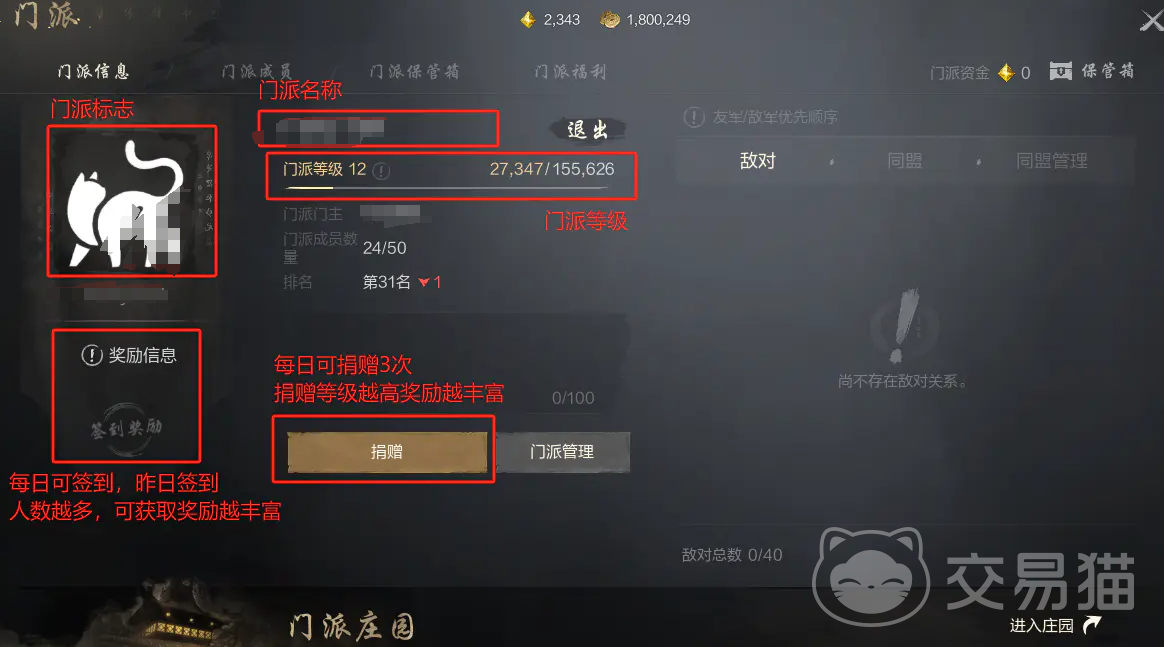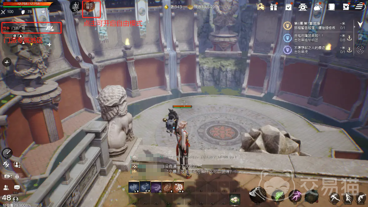 如果大家想要解锁练武场功能的话,第一件要做的事情便是参加门派。进入门派之后,可以查看当前在线的门派成员以及成员信息。然后再点击门派信息下方的门派庄园,这样就可以来到门派所属的巨大广场中。