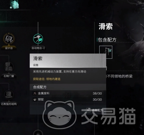 2、在家园中确定好滑索的起点,在营地建造中的设施里找到滑索的建造,就能开始进行滑索桩的建立;