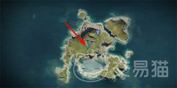 找到该宝箱后大家需要打开小地图,之后会看到该小岛的全貌,在看到全貌后可以看到岛屿中间有一个爱心形状的湖泊,大家需要前往该湖泊的左半边,然后沿着湖泊走就能找到第三个宝箱了。