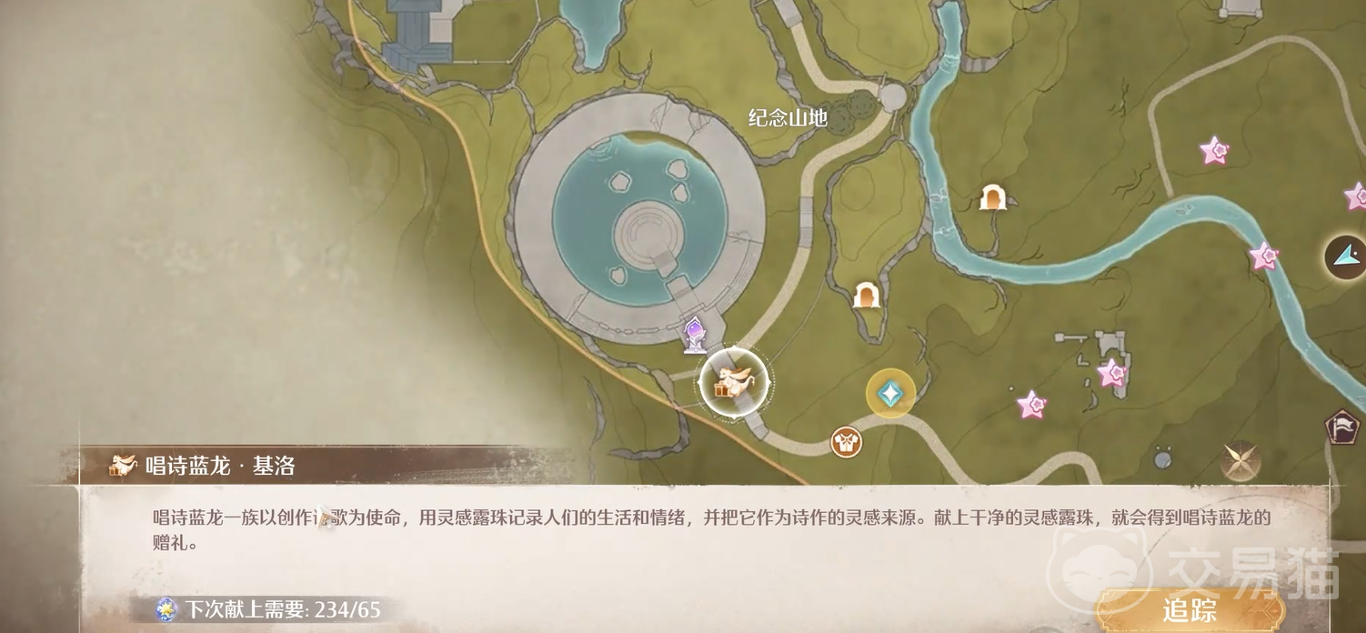 首先,我们要在地图中找到唱诗蓝龙·基洛这个点位。这里我们要的是蓝龙的赠礼,因此我们需要不断地向它供奉灵感露珠。大家可以先准备一些灵感露珠做准备,只要存够了就可以解锁出祈愿新生这套梦幻衣饰了。接下来,只需专注于制作这一套装中的裙子部分,并穿上它,便能继续探究这个任务的秘密。