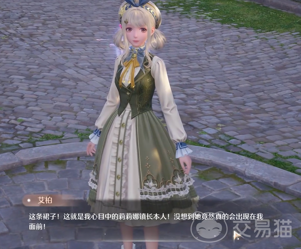 与艾柏展开对话,他将委托给你一个特别的任务:观察莉莉娜镇长的经典服装风格。此时,你只需换上祈愿新生的全套服装,再次与艾柏交流,任务便大功告成,他会告诉你,穿着这套裙子很像莉莉娜镇长本人,顿时就有了灵感。