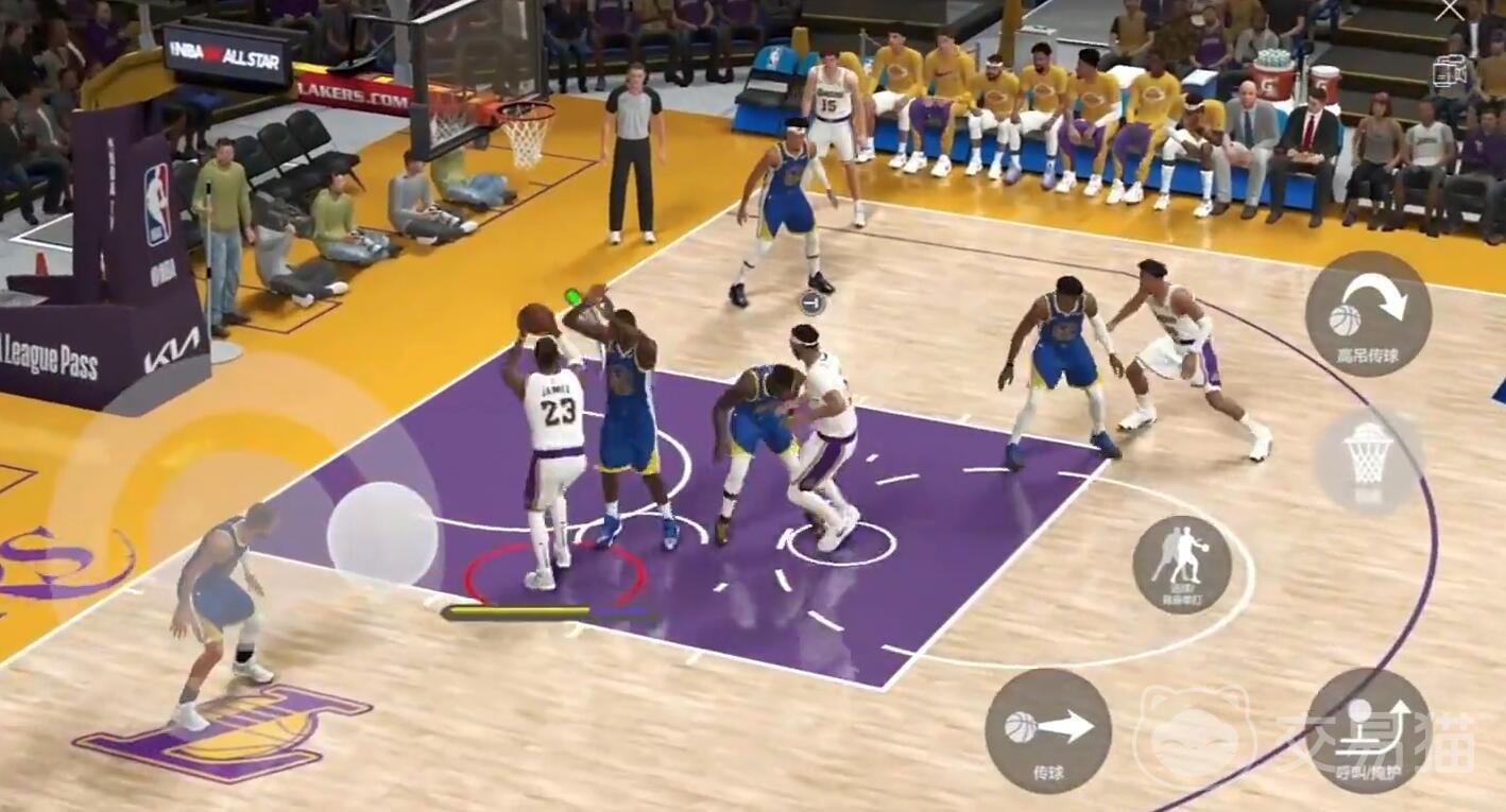詹姆斯的身体素质极其出色,使其在游戏中拥有强大的力量、速度和爆发力,此外,詹姆斯还拥有顶级的突破能力,能够强行突破防守球员的防线,杀向篮下得分。在游戏中,玩家操控詹姆斯进行突破时,他可以凭借身体优势挤开对手,创造出进攻空间,并且能够在对抗中保持平衡,完成上篮或扣篮动作。詹姆斯在游戏内具备较为稳定的投篮能力,无论是中距离投篮还是三分球,都有一定的命中率。