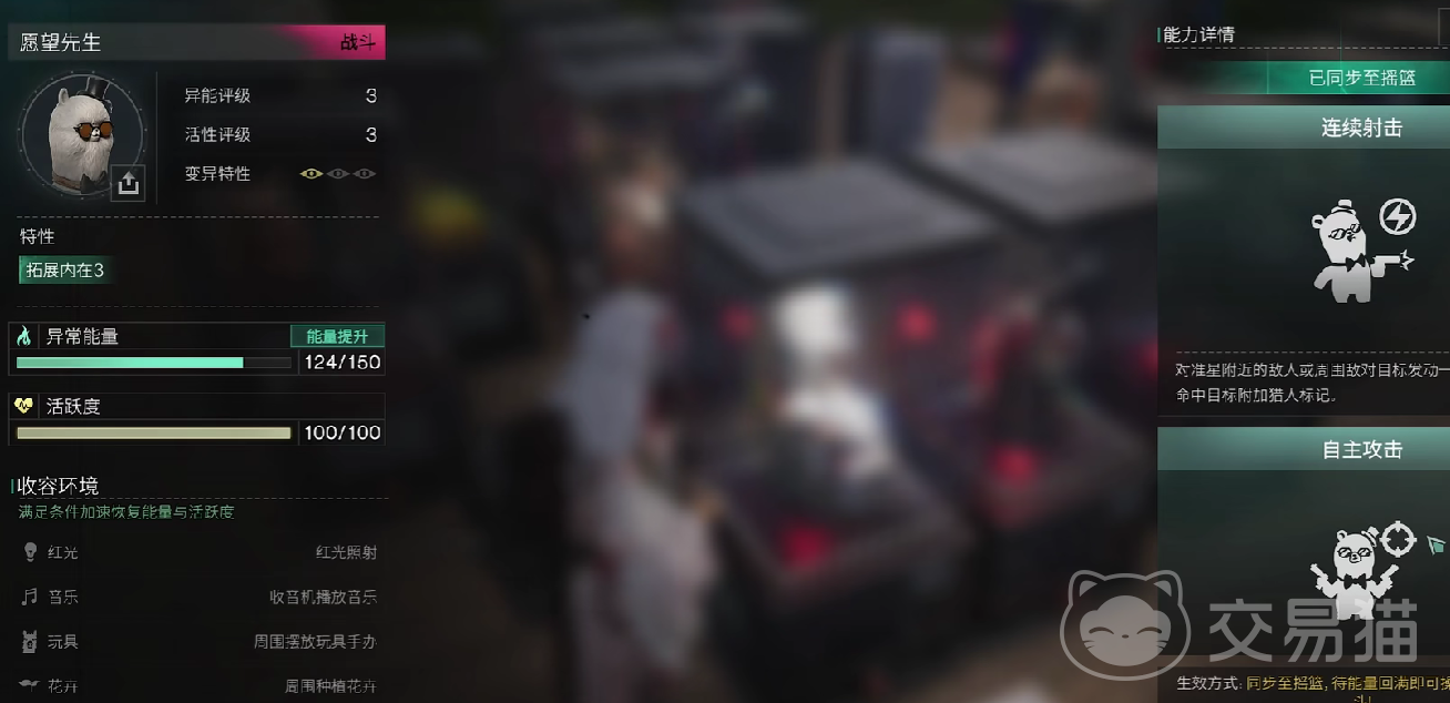 愿望先生在游戏当中的定位是一个战斗型的异常类生物,他拥有极高的战斗评分以及活性数值,由于愿望先生能够自主射击的能力,面对怪物繁多的情况,玩家可以使用愿望先生来代替自己的主要技能。