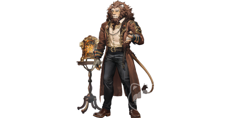 虽然是一个狮子的外在形象,但是平时看起来是彬彬有礼,温文尔雅的形象,但是在作战时,战斗风格却非常的野性,非常符合角色形象,在战斗中也非常的游刃有余。封装体:台钟,会给他带来一个”主观时区”的效果,在造成伤害之后理性会加1,野性-1,收到伤害之后理性会-1,野性则会+1。