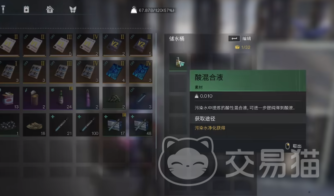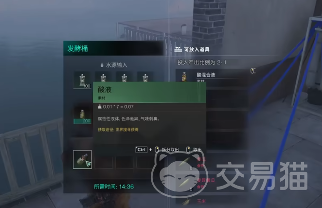 等到后期战斗的时候,很多玩家都会发现因为酸液不足,所以没有更多的子弹可以使用,这时候就需要想办法去自行制作酸液,可以选择去开采硫磺矿,然后可以使用硫磺去贩卖机交易,6个硫磺可以获得一个酸,这是相对比较便捷的一个方法,缺点就是有很多时候其他的玩家没有交易需求,玩家的硫磺就无法进行兑换。
