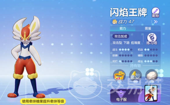 闪焰王牌是宝可梦大集结里面设定比较特殊的一个角色,这个角色自身的各项数值都非常优秀,加上这个角色的外观非常像一只兔子,很多人都想要操控这个角色加入战斗,但是就是不知道如何上手,其实想玩好闪焰王牌这个角色非常简单,角色本身是一个攻击型的宝可梦主打的是远距离的攻击,这就代表在对战的时候及时和对方保持较远的距离,也可以顺利击中对手,这种角色的设定非常适合新手玩家。