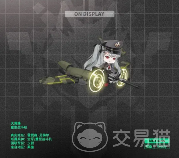 大黄蜂是一个非常可爱的双马尾少女角色,俏皮灵动,相信很多玩家都会非常喜欢,这样一个少女的却是使用重型作战机战斗,十分有反差,是游戏里的一个四星角色。“恃强凌弱”的特性,如果目标质量盾为0,穿甲提高,如果攻击的是轰炸机的话,穿甲可进一步提高至限定百分比。