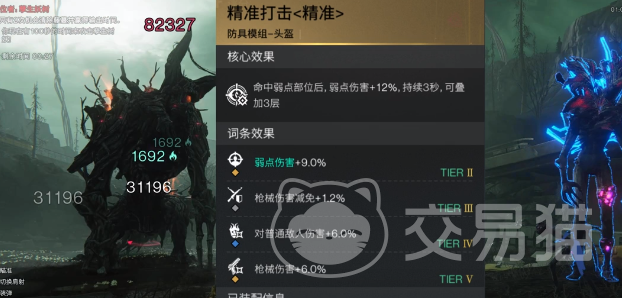 召唤异常物面对boss或者是精英怪时都可以增加25%的伤害,使用战术道具之后还可以增加25%的boss伤害。这一个组合如果完全启动就能增加50%的枪械伤害,95%的弱点伤害,还有20%的对怪物伤害以及50%的对boss伤害。