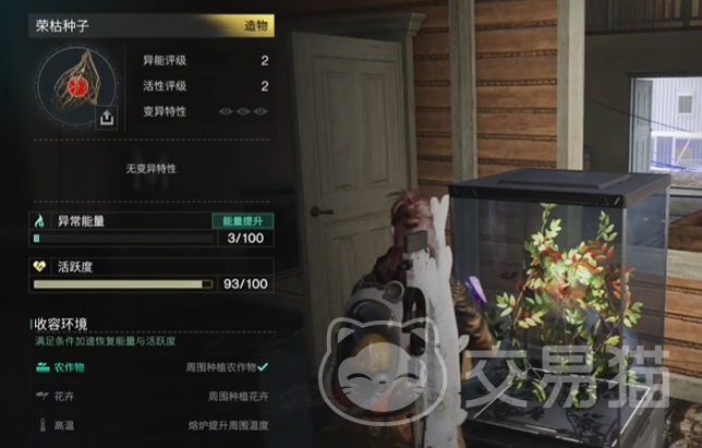 在游戏中异常物的种类非常多样,每一个异常物的技能也都各不相同,枯荣种子是一个非常强大的异常物,他的护盾技能可以保护玩家,增加护盾,当玩家血量低于20%的时候,枯荣种子可以提供一个自身血量15%的护盾,能够在战斗中帮助玩家更好的生存下来,枯荣种子还可以制作各种活甲道具,使用后在血量低于20%的时候能够在5秒内回满血量,是一个在战斗中非常实用的异常物。