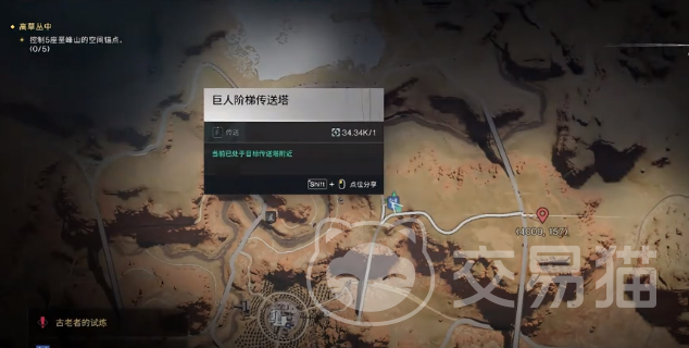 玩家在打开地图之后就能看到对应的坐标,坐标是4004,143,通过传送的方法就可以来到旁边巨人阶梯的传送点。还可以通过叫车前往的方法来到异常点位置。