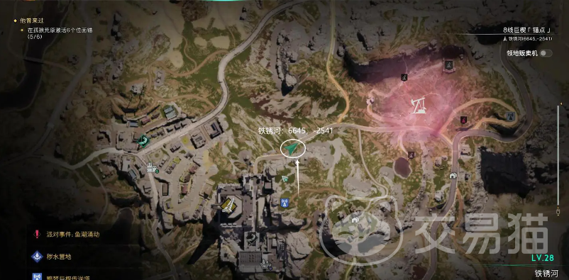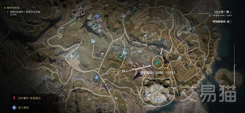 第一个诡谲画作位于代顿检测点传送塔附近,具体坐标是在代顿湿地的6886,-5293区域。找到画作后使用空间法则发现藏宝图,解读后发现宝箱位置在望岛镇,寻找发光点即可。代顿区的高岸镇附近找到传送塔,在5440,-5976找到画作,同区域的迈尔集市右下方湿地区域找到宝箱,里面能发现小型制退器。同时附近的代顿医院旁边有条河流,名为铁锈河,具体坐标是5888,-4268,可以找到新的诡谲画作,根据藏宝图解读得到在黯梦巨楔发光点处有宝箱的,打开是轻型光学瞄具。