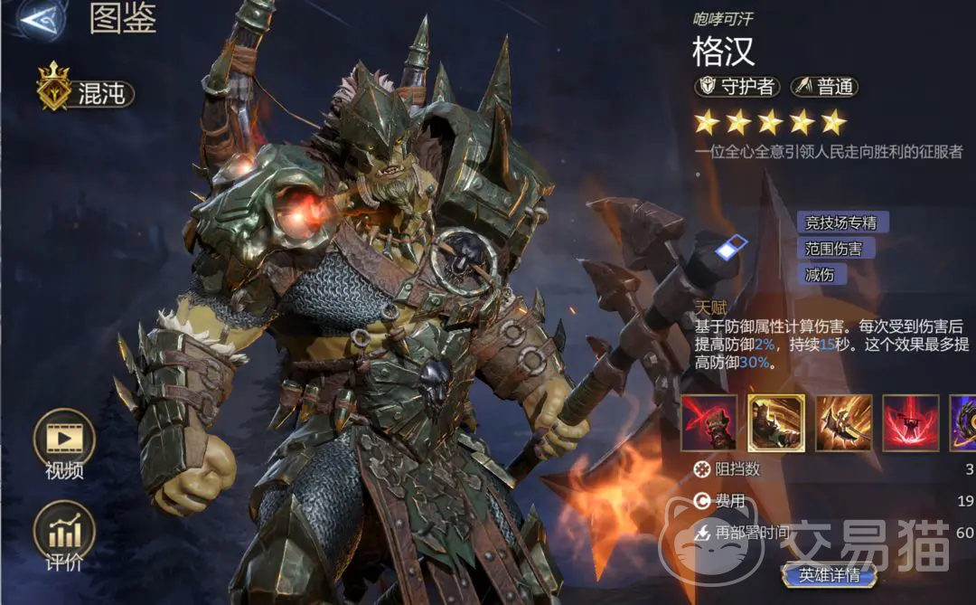 他是混沌征服者阵营的领主,能够队伍提供残血是攻击还有防御的加成效果,根据防御力来计算伤害,通过堆叠防御属性就能满足生存以及输出的需求,反击能打出高额输出,还拥有团队减伤的效果,在竞技场、虚空裂隙等敌方数量比较多的关卡均能有突出的表现。天赋带来的效果是根据防御计算对敌人造成的伤害,每次受到伤害后提高2%的防御,防御效果最多提升30%。