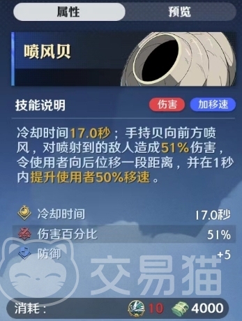 喷风贝作为一款兼容性极强的辅助装备,同样享有17秒的冷却特权,它不仅能对直线路径上的敌人造成51%攻击力的伤害,还赋予了使用者迅速后撤的能力,同时在接下来一秒内大幅提升50%的移动速度,这种进可攻退可守的灵活性,让持有者能够在战场上自由动作,无论是追击残敌还是躲避致命一击,都能展现出很强的机动性。