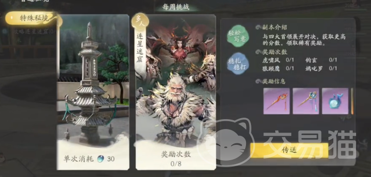 这一个神秘的洞窟就是大家所说的连星迷窟,在御灵图鉴中还能看到第1个金色品质就在这。这三个御灵全部都是这里的首领,玩家等级起码到30级才可以开启会分成两种模式,一种是单双人模式,一种是组队模式。