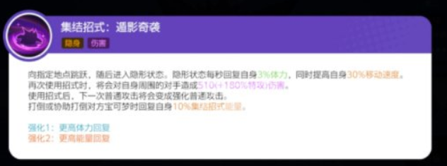 食梦是耿鬼的独特技能之一,玩家使用该技能可以使敌人处于睡眠状态,如果遇到在此之前的周围已经有该睡眠状态的敌人的状况,那么玩家再次使用该技能就会对该敌人进行攻击,一技能等待的时间也会得到缩短。耿鬼还有一个带有隐藏身形性质的祸不单行技能,它可以指定地点对敌人完成攻击,当敌人的状态比较异常的时候,玩家拥有的技能伤害将得到提高并且恢复体力,冷却的时间会得到缩短。耿鬼的集结招式是遁影奇袭,主要的表现形式为跳跃并进入隐形状态后再进行攻击。