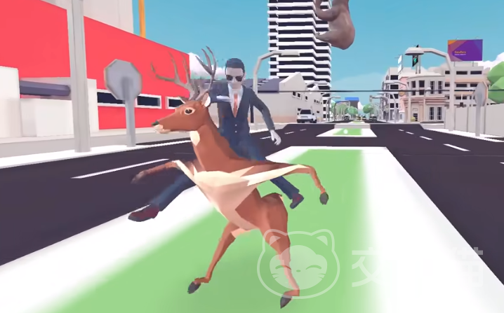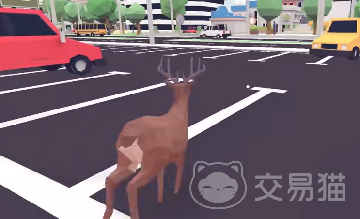 这只鹿除了会像动物一样在游戏里行走,还可以像人一样站立起来,这时候就可以利用鹿角去给城市搞破坏,可以撞毁城市里的垃圾桶,路灯或者是车辆玻璃,甚至还可以手拿枪支扫射整个游戏场景,在这个过程中没有任何的子弹限制,并且也不会有任何人制止玩家的行为,可以操控这只鹿在游戏里肆意妄为。